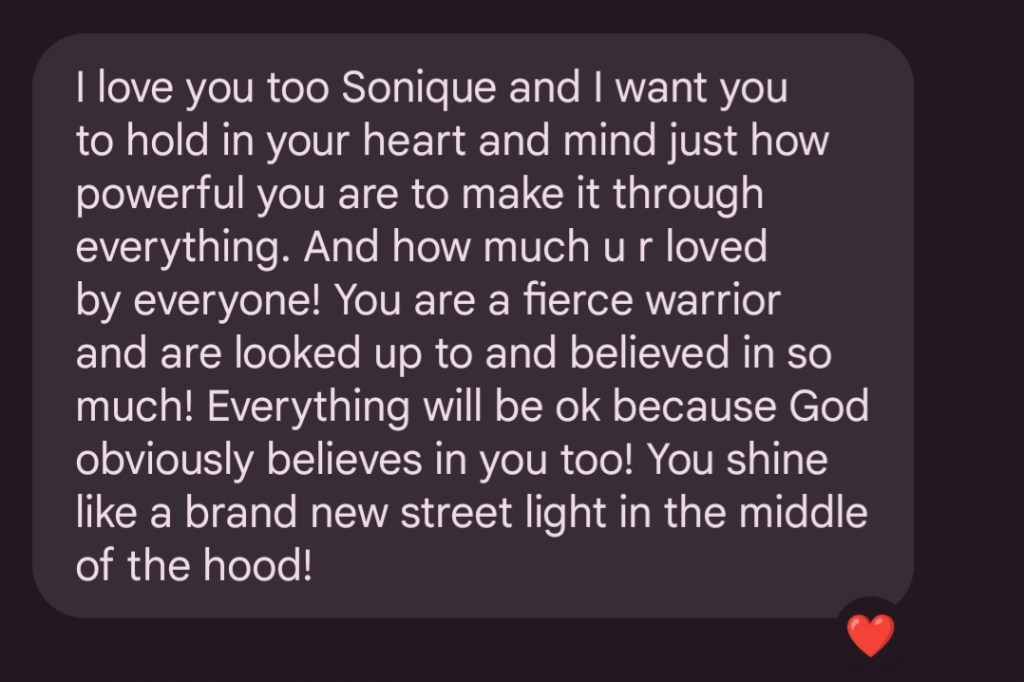 You told me out of love that last little relationship wasn’t going to work because you can’t love people into their potential, they have to want it for themselves. You told me when someone shows you who they are believe them and don’t try to gaslight myself into believing differently. His loss.