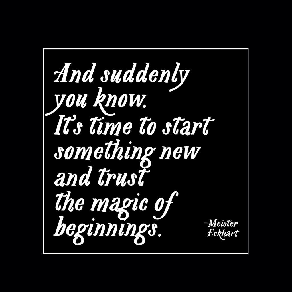 And suddenly you know. It’s time to start something new and trust the magic of beginnings. -Meister Eckhart