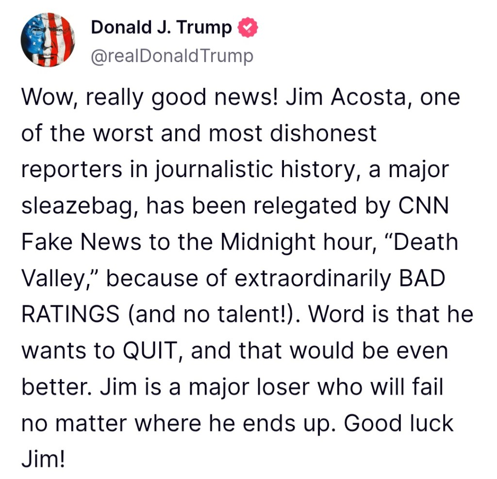 I stand with you Jim Acosta! Thank you for your years of bold journalism. You deserve better.